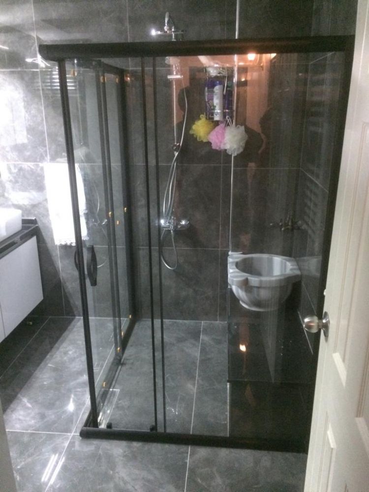 Siyah Duşkabin Mika Camlı Teknesiz Düz 2 sabit 2 sürgülü