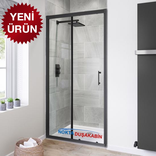Teknesiz Siyah Profil Düz Duşakabin 1 sabit 1 sürgülü SP113